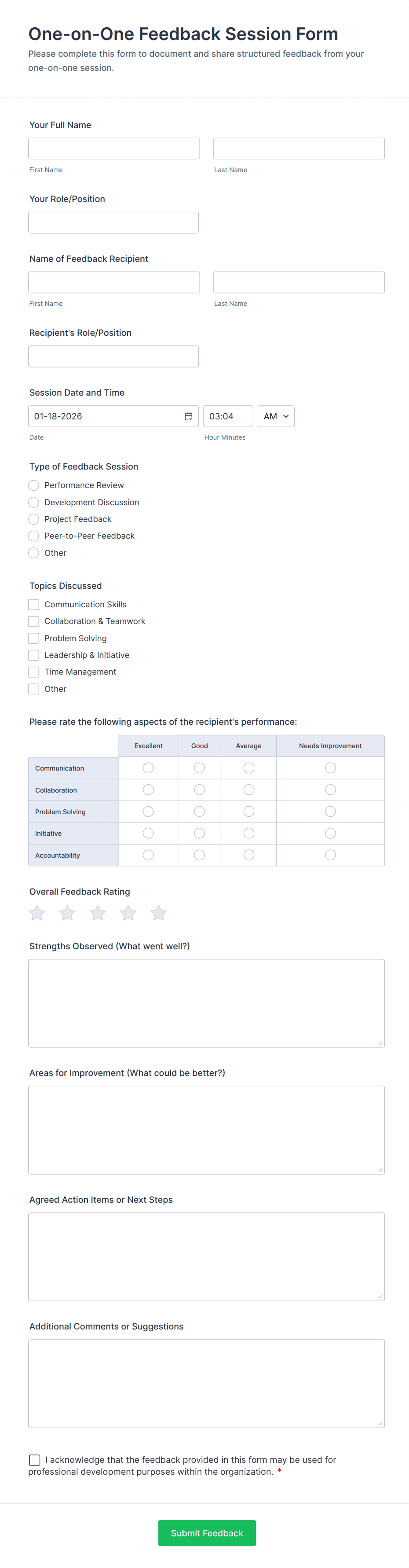 Create the perfect Self Evaluation Form for your employees. Collect, view, and manage responses on any device. Free to use and easy to customize!