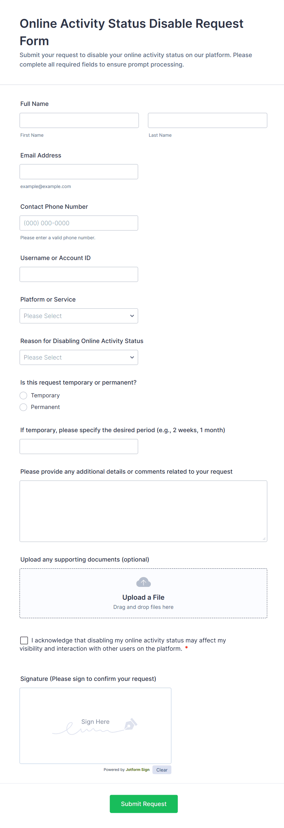 When built with platforms like Jotform, submissions are securely stored and can be restricted to authorized personnel, ensuring privacy and data protection.