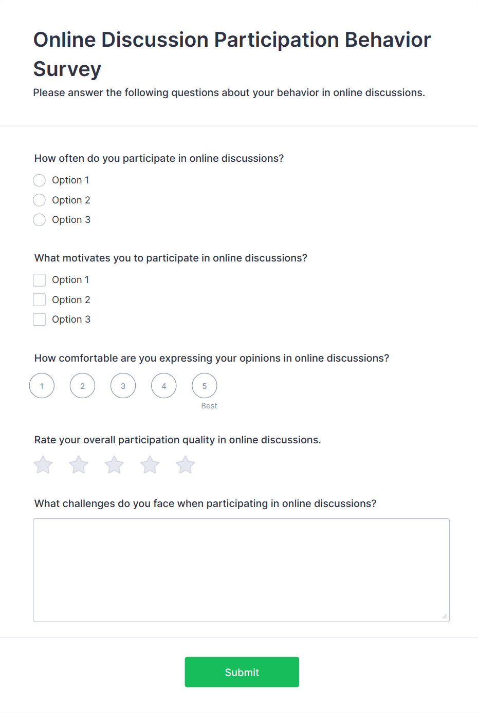 An online learning survey is a questionnaire used by e-learning companies to find out how students feel about their experience in e-learning courses.