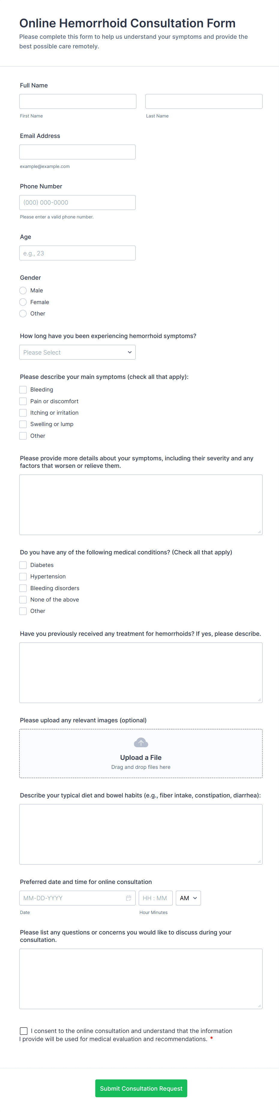 Accept requests for e-visits through this free online appointment form. Easy to customize. embed, and share. Integrate with 100+ apps. HIPAA compliance features.