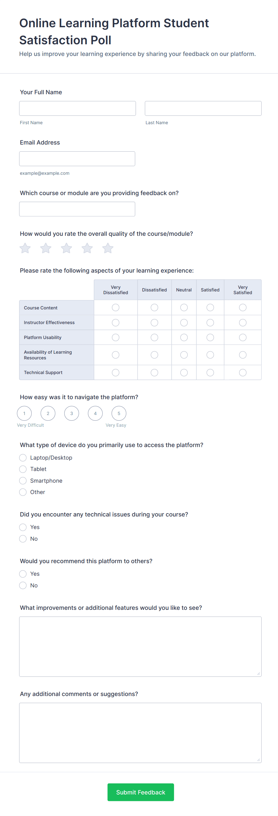• Online course forms can ask about platform usability and digital resources.