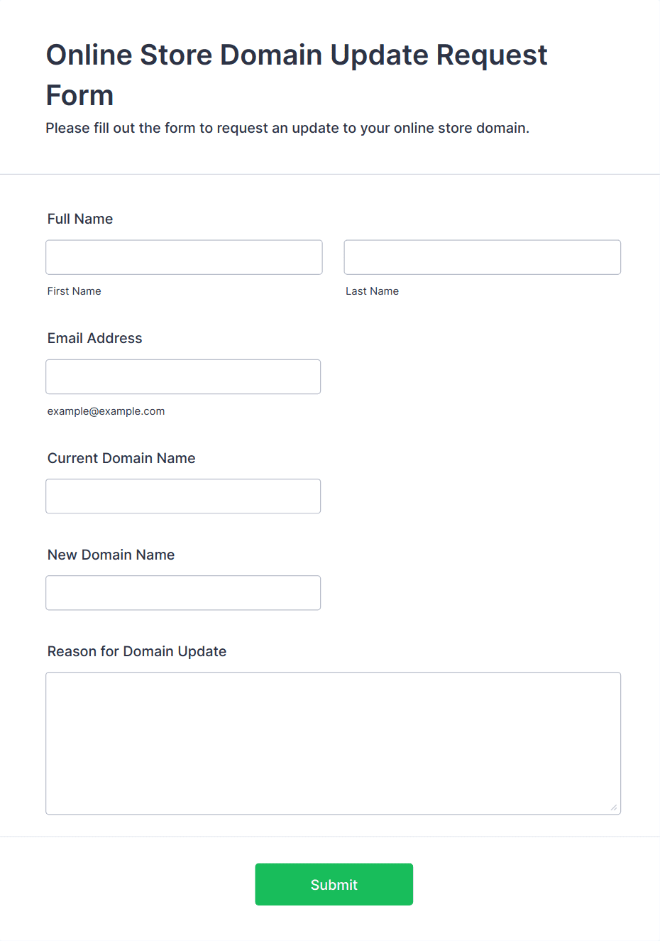 An e-commerce form template is a pre-designed online form that helps businesses collect orders, payments, and customer information for products or services sold online.
