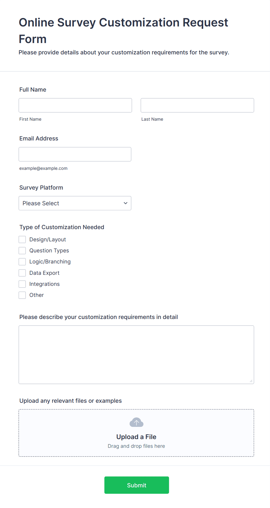 Survey templates are pre-designed forms that help individuals and organizations collect feedback, opinions, or data from a target audience. These templates are widely used for a variety of purposes, such as customer satisfaction surveys, employee engagement assessments, market research, event feedback, and academic studies. By providing a structured set of questions, survey templates streamline the process of gathering valuable insights, making it easier to analyze trends, measure satisfaction, and make informed decisions. Whether you’re a business owner, HR professional, educator, or researcher, survey templates offer a quick and effective way to reach your audience and collect actionable information.