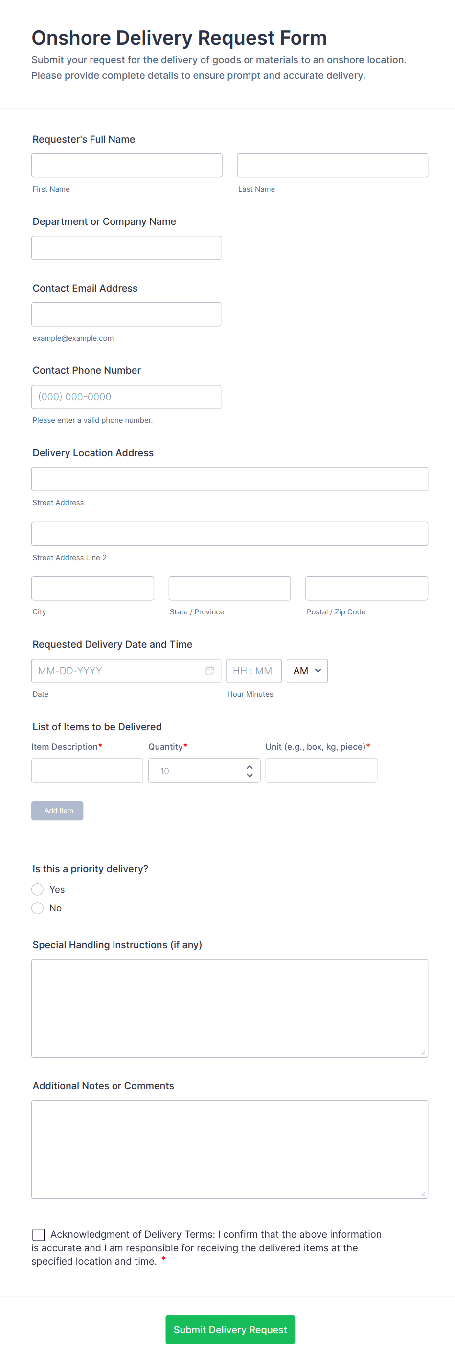 • Medical delivery forms might include compliance checkboxes and temperature logs.