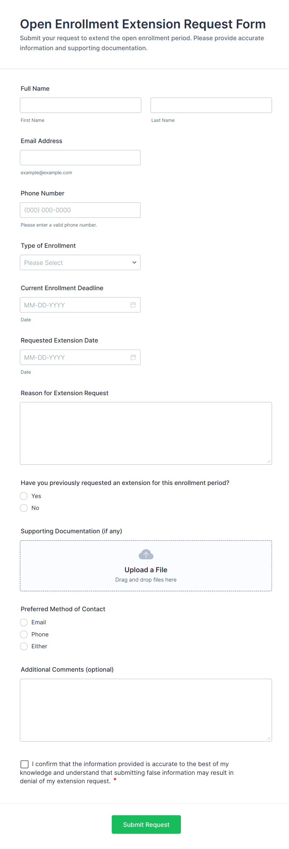 Collect and review deadline extension requests during open enrollment with Jotform, including key enrollment details and supporting documentation, for benefits teams, schools, and membership organizations.