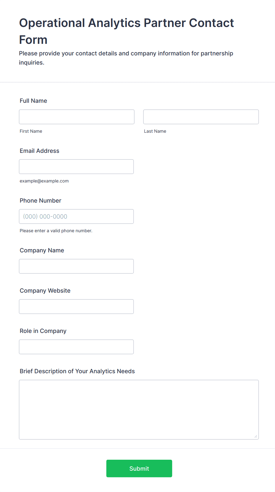 • Sales or quote request forms could ask for company details, budget, and specific service interests.