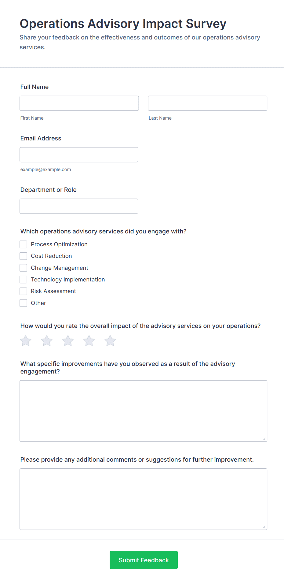 For employee surveys, consider adding anonymity options; for customer surveys, include contact fields if follow-up is needed.