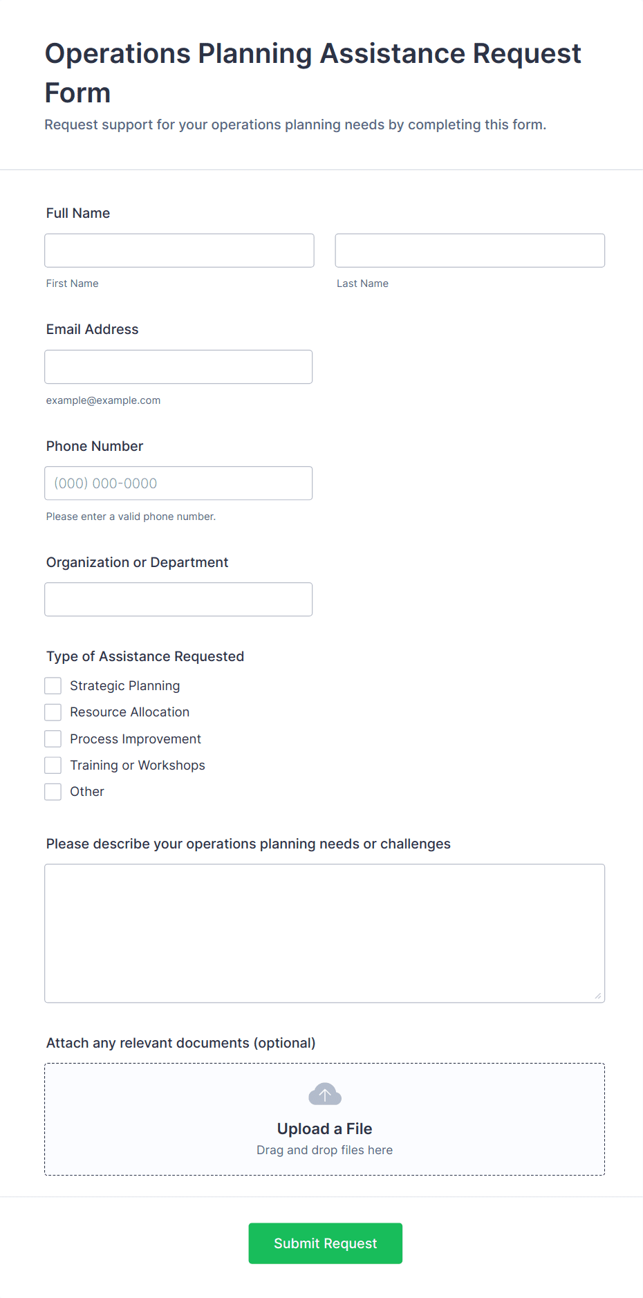 • Type of request (dropdown or multiple choice)