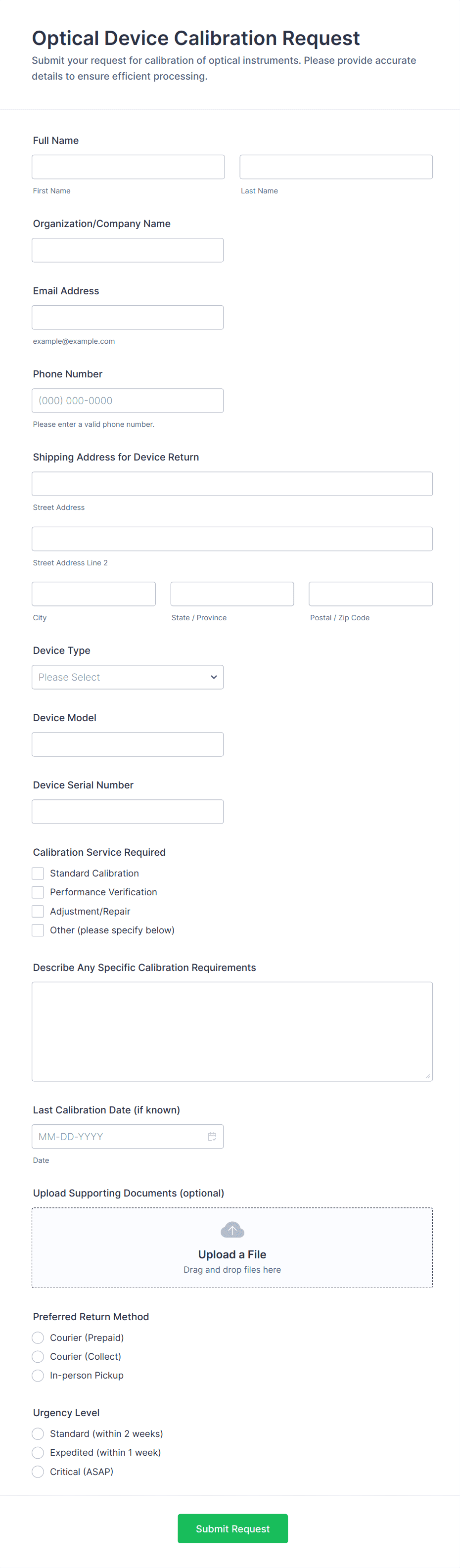 Calibration forms are structured documents used to record, verify, and manage calibration activities for instruments, tools, and measurement equipment. They help teams document calibration schedules, methods, results, and approvals so equipment stays accurate, reliable, and compliant with internal standards or industry requirements. Calibration forms are commonly used in manufacturing, laboratories, healthcare, engineering, quality assurance, and field service environments for equipment like scales, gauges, sensors, lab instruments, and testing devices. By standardizing calibration documentation, these forms reduce measurement errors, support audit readiness, and help organizations maintain consistent quality.