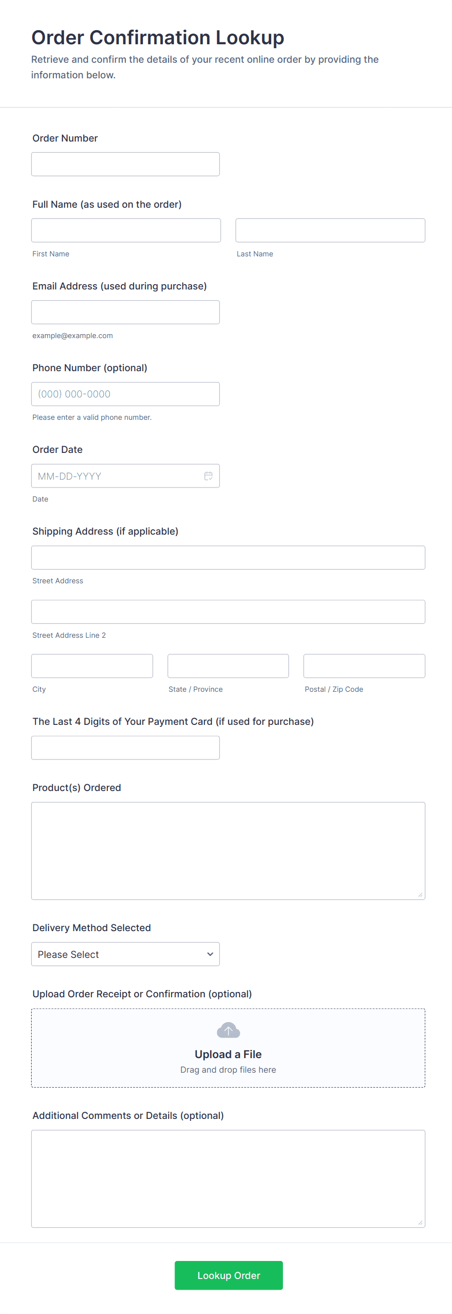 Confirmation Form Templates are specialized online forms designed to capture and verify user consent, agreement, or acknowledgment for a wide range of scenarios. These templates are commonly used to confirm event attendance, order details, appointment bookings, policy acceptance, or receipt of information. By providing a structured way for users to confirm their participation or understanding, these forms help organizations ensure clarity, reduce misunderstandings, and maintain accurate records. Whether you’re managing RSVPs for an event, confirming service appointments, or collecting digital signatures for policy agreements, confirmation forms streamline the process and provide a clear audit trail.