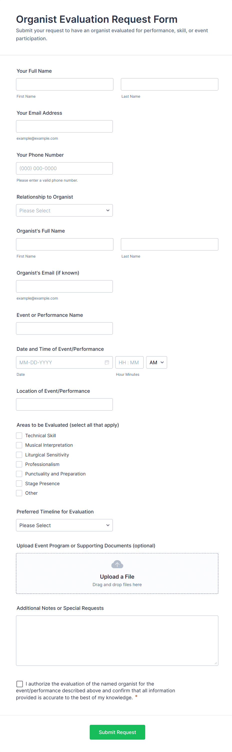 An evaluation form is a structured document or online tool used to collect feedback, assess performance, or measure satisfaction in various settings such as workplaces, schools, events, or customer interactions.