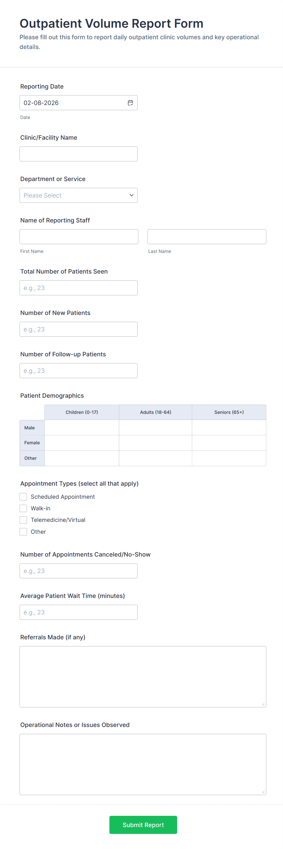 • For business reports: Include fields for dates, metrics, comments, and file uploads.
