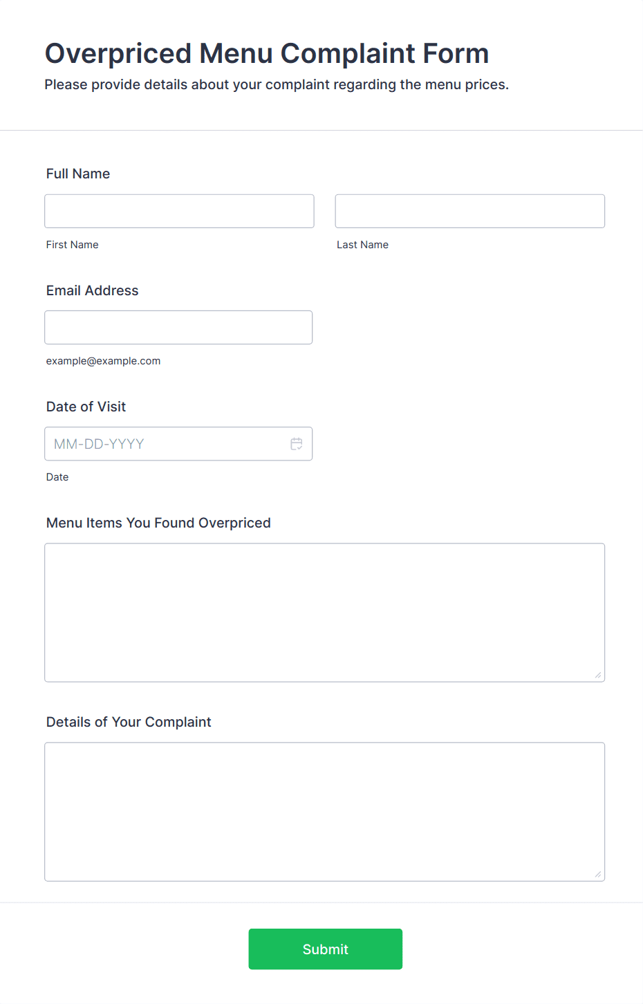 Restaurant Complaint Form