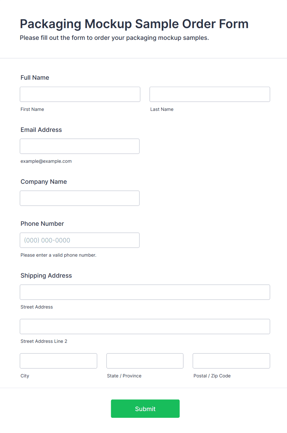 • Physical vs. Digital Goods: Physical product forms need shipping address fields, while digital goods may only require email delivery.
