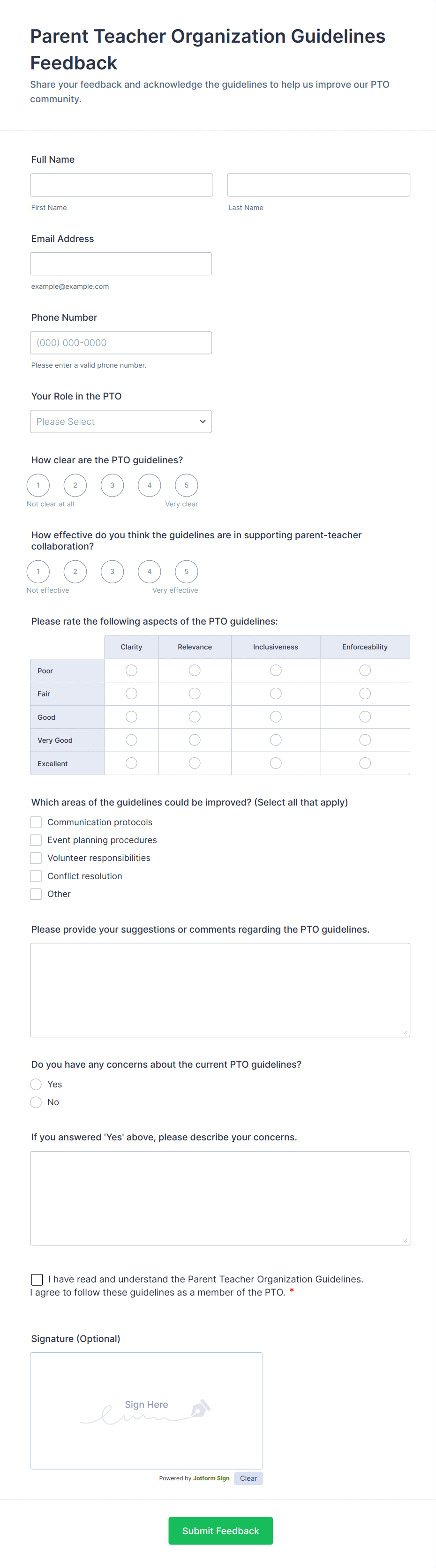 Feedback forms can be designed to collect anonymous responses or require identification, depending on the purpose. Jotform ensures data privacy and security through encryption and compliance with data protection regulations.