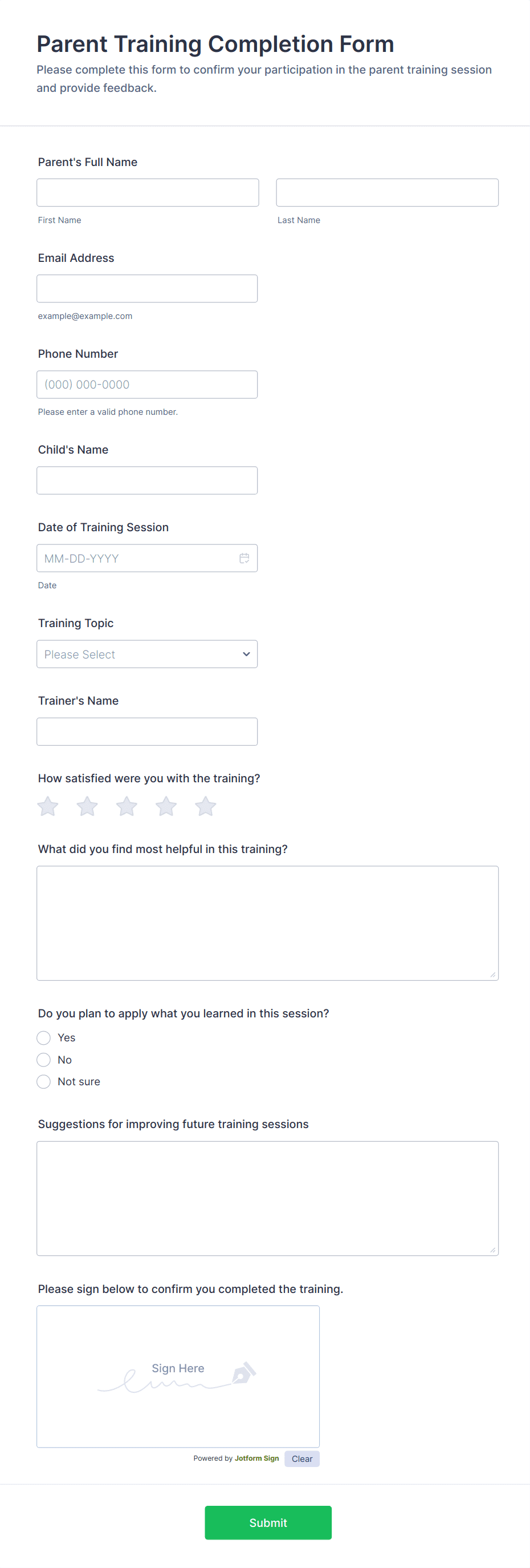 By following these steps, you can create a training form that streamlines data collection, enhances participant engagement, and provides valuable insights for continuous improvement. Jotform’s flexible features ensure your forms are both user-friendly and effective, regardless of the training context.