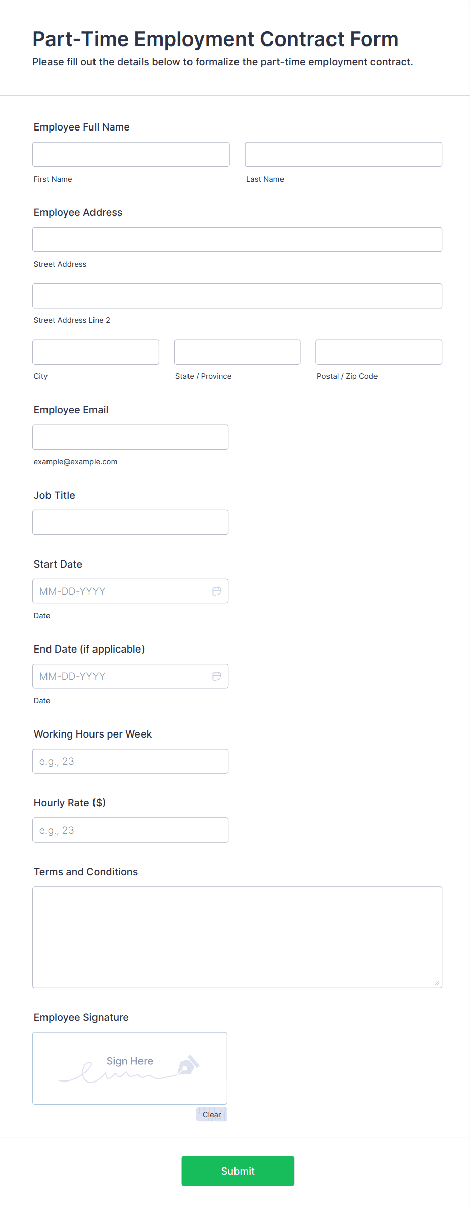 Employment forms are essential documents used throughout the employee lifecycle, from recruitment and onboarding to performance evaluation and offboarding. These forms help organizations collect, organize, and manage critical information such as job applications, interview feedback, background checks, new hire paperwork, timesheets, performance reviews, and exit interviews. By standardizing the data collection process, employment forms ensure compliance with company policies and legal requirements, streamline HR workflows, and improve communication between employers and employees. Whether you’re a small business owner, HR manager, or recruiter, employment forms are vital for maintaining accurate records and supporting efficient human resource management.