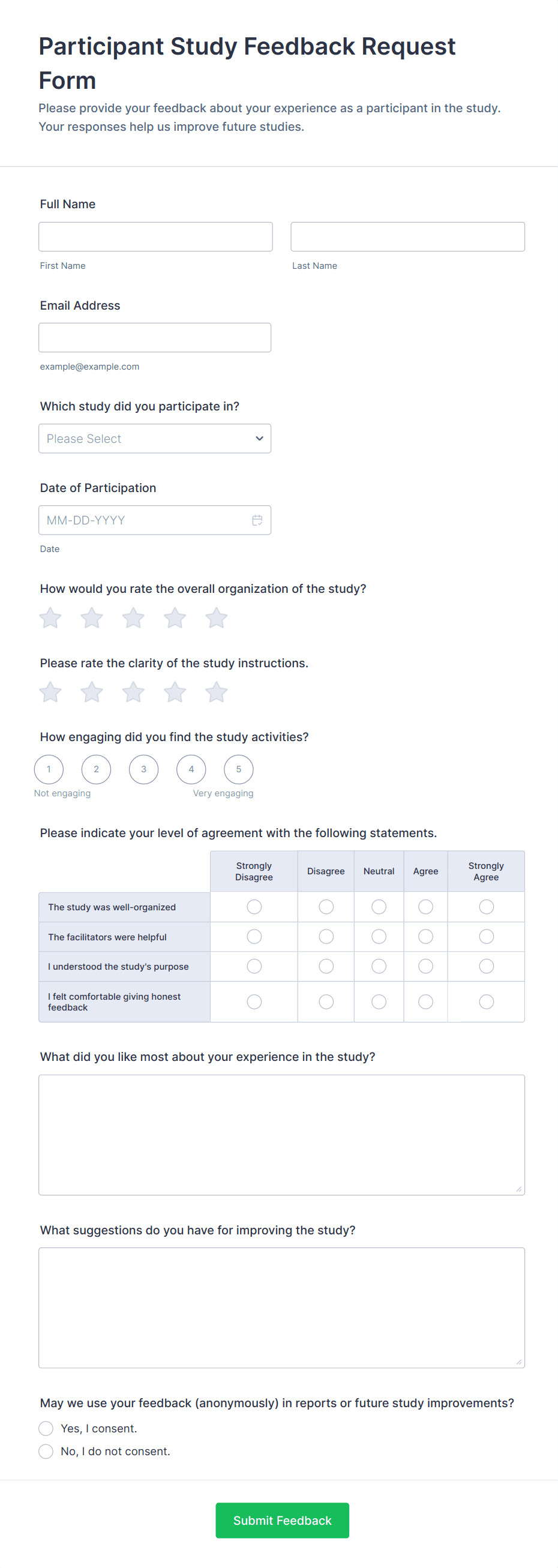 • Event Feedback: Collect attendee impressions and suggestions after conferences, workshops, or webinars.