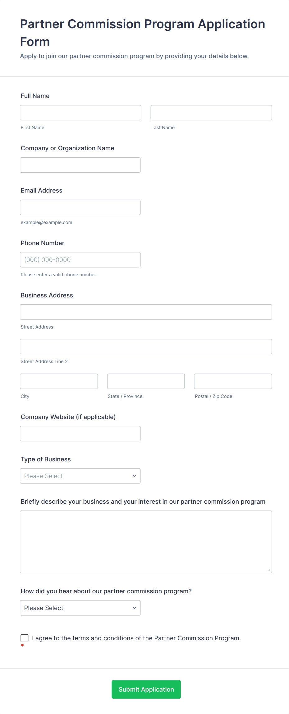• Corporate Partnership Forms could request case studies, references, and compliance certifications.