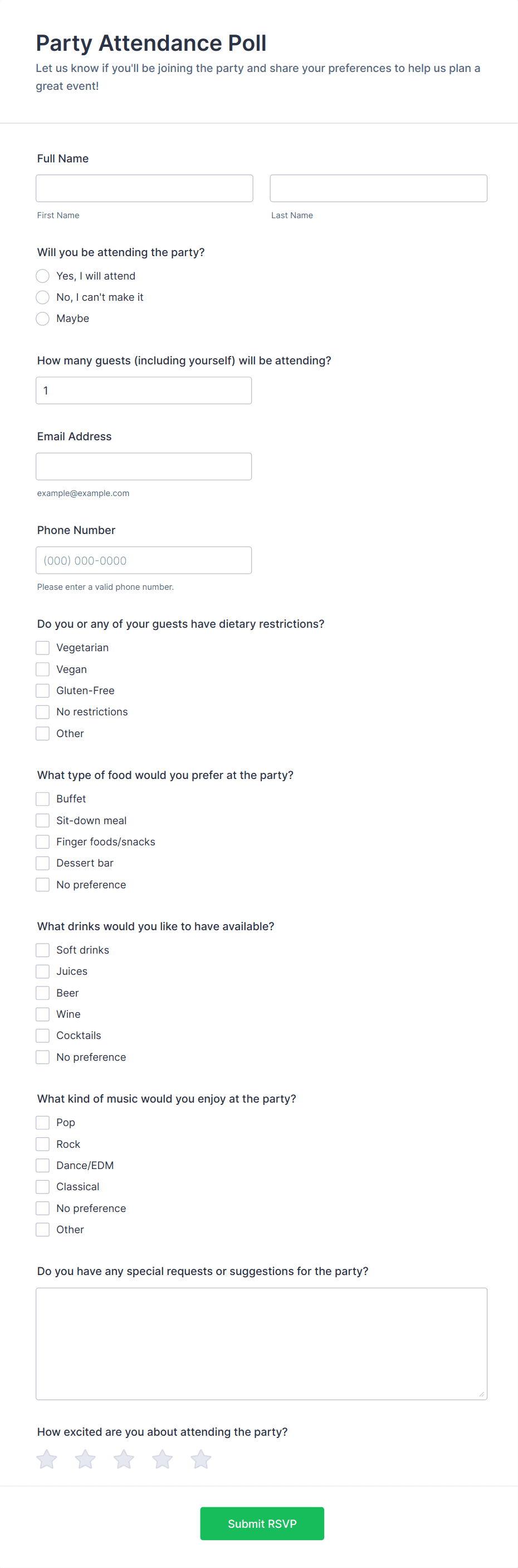 Online Party RSVP Form