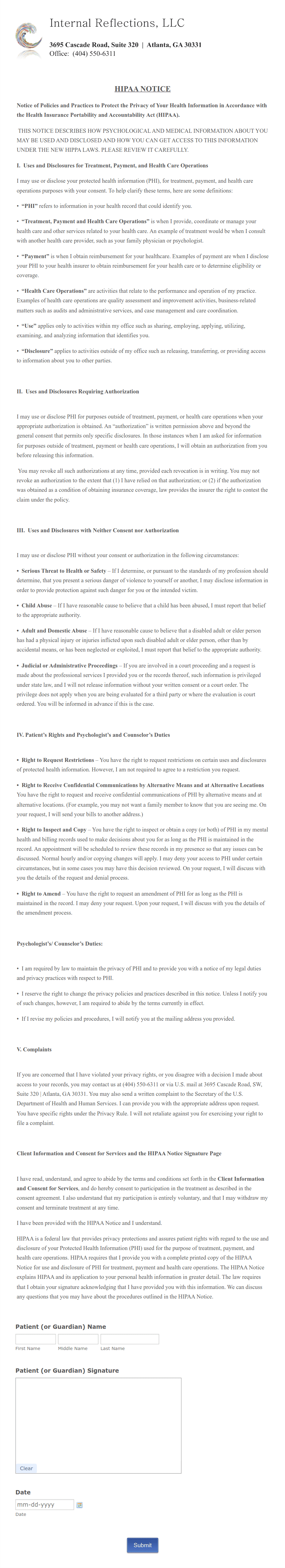 Professional Counseling Informed Consent Form