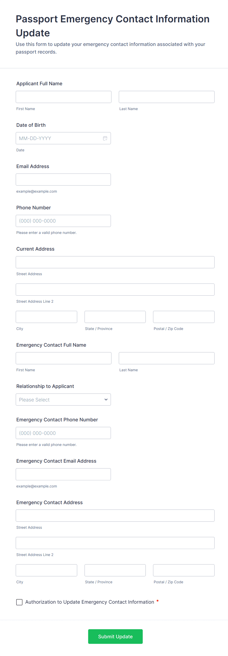 Emergency Contact Information Update Request Form