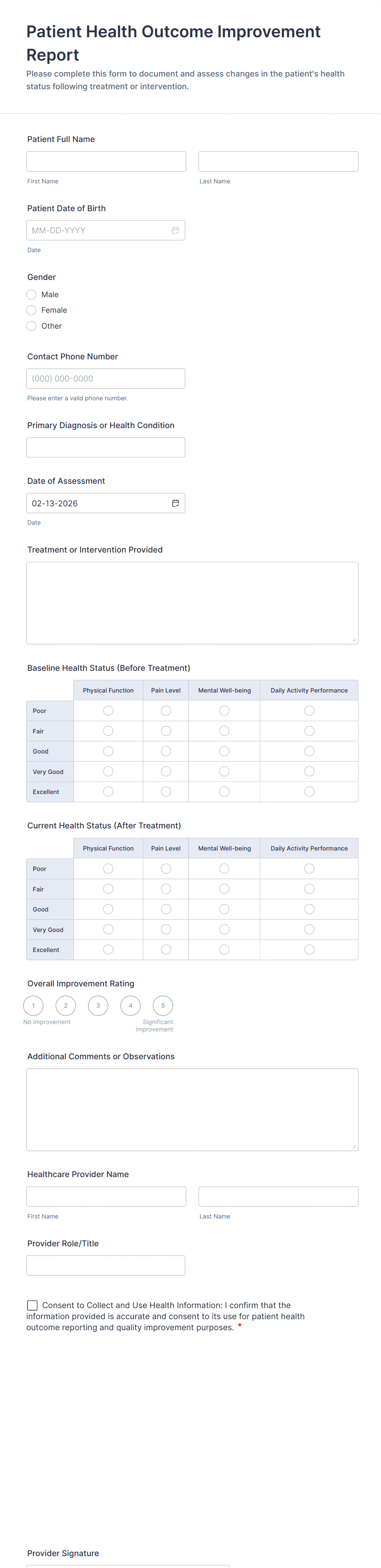 • For business reports: Include fields for dates, metrics, comments, and file uploads.