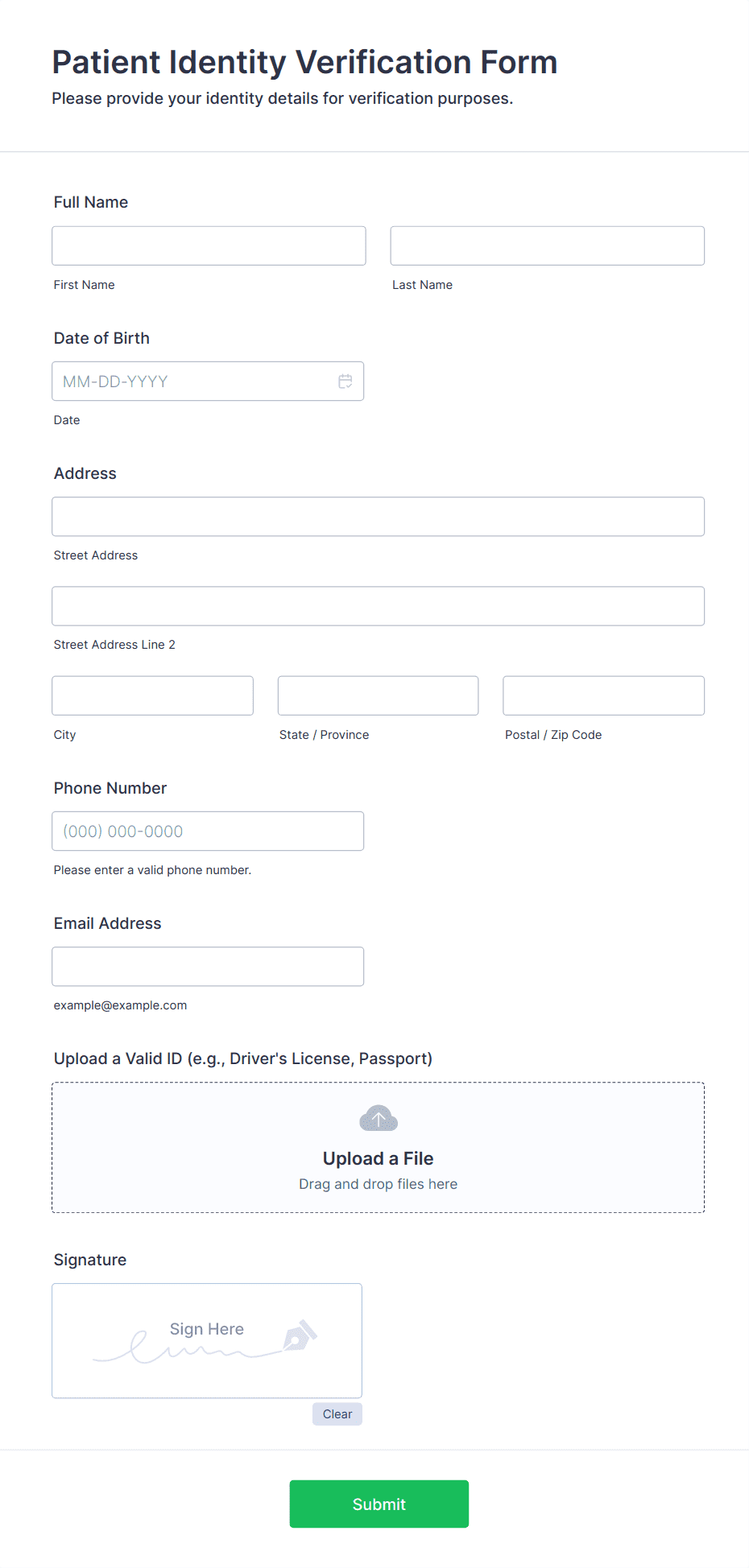 By following these steps, you can create a secure, user-friendly Patient Registration Form that streamlines your intake process, reduces errors, and enhances the patient experience—whether in-person or online.