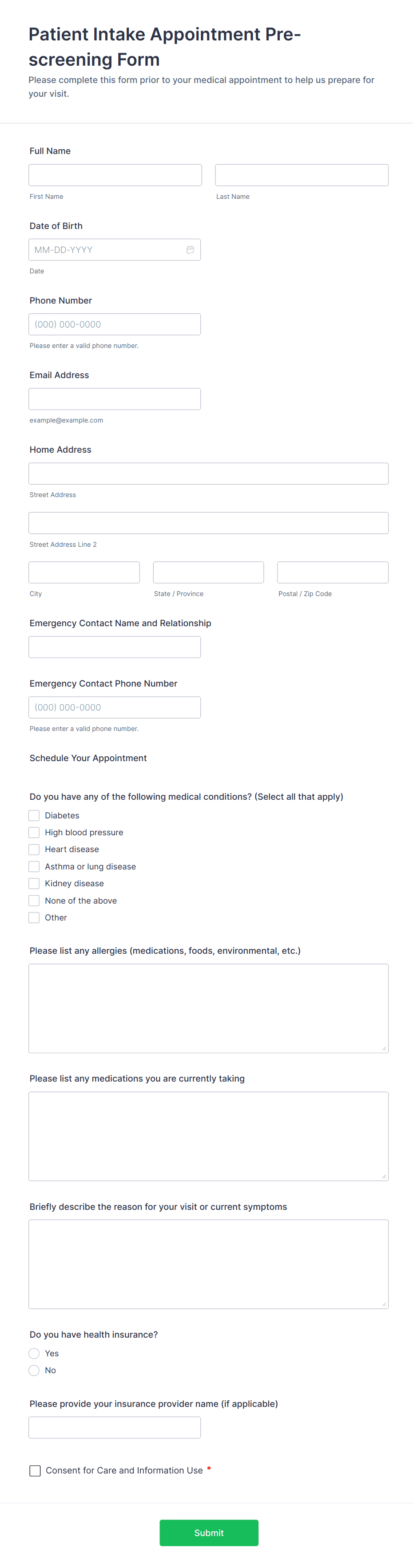 • Healthcare intake forms may require fields for medical history, allergies, and insurance.