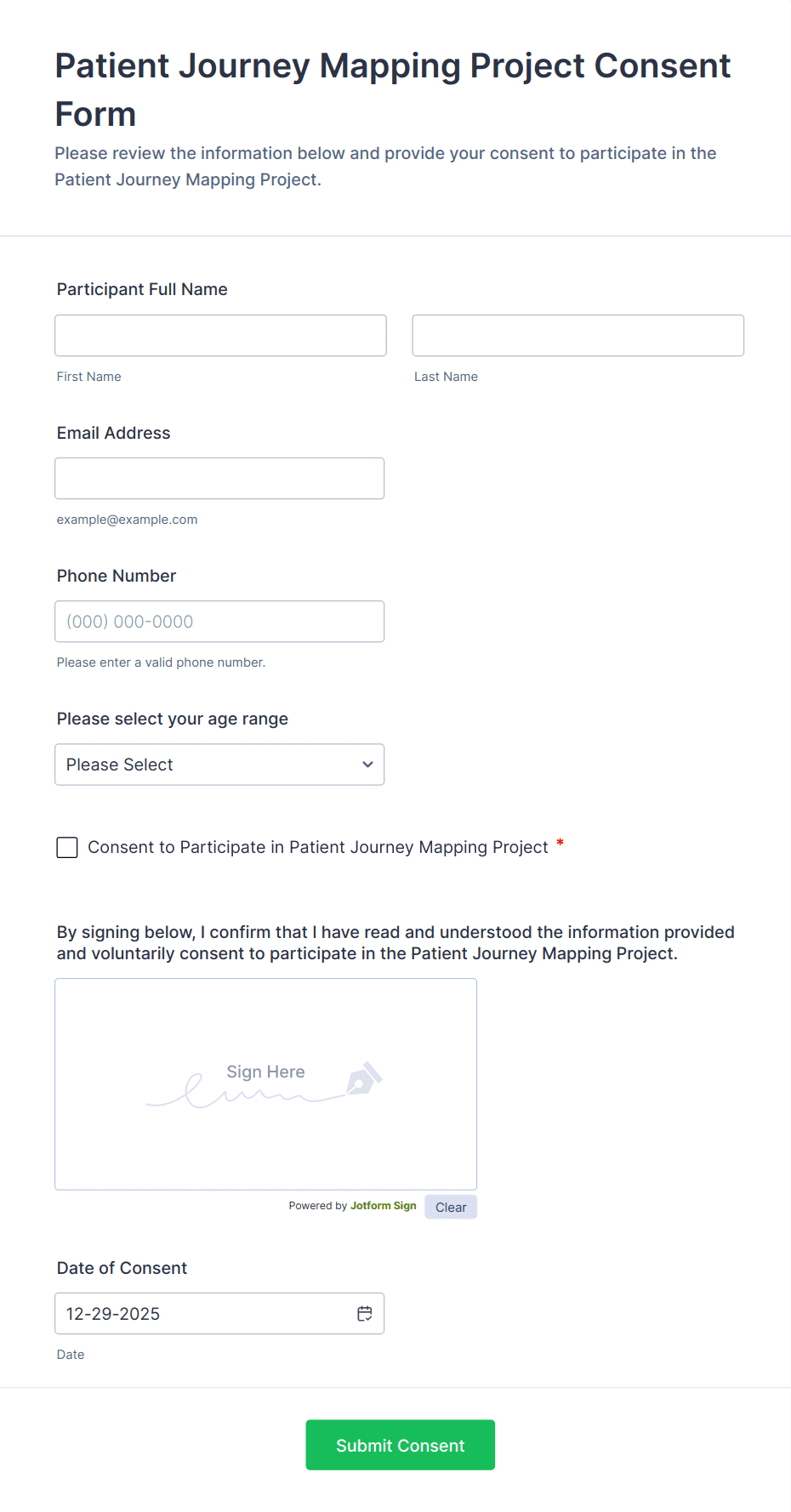 This template is easy to customize and use, and it simplifies the process of collecting signatures, making it the ideal solution for efficient informed consent processes.