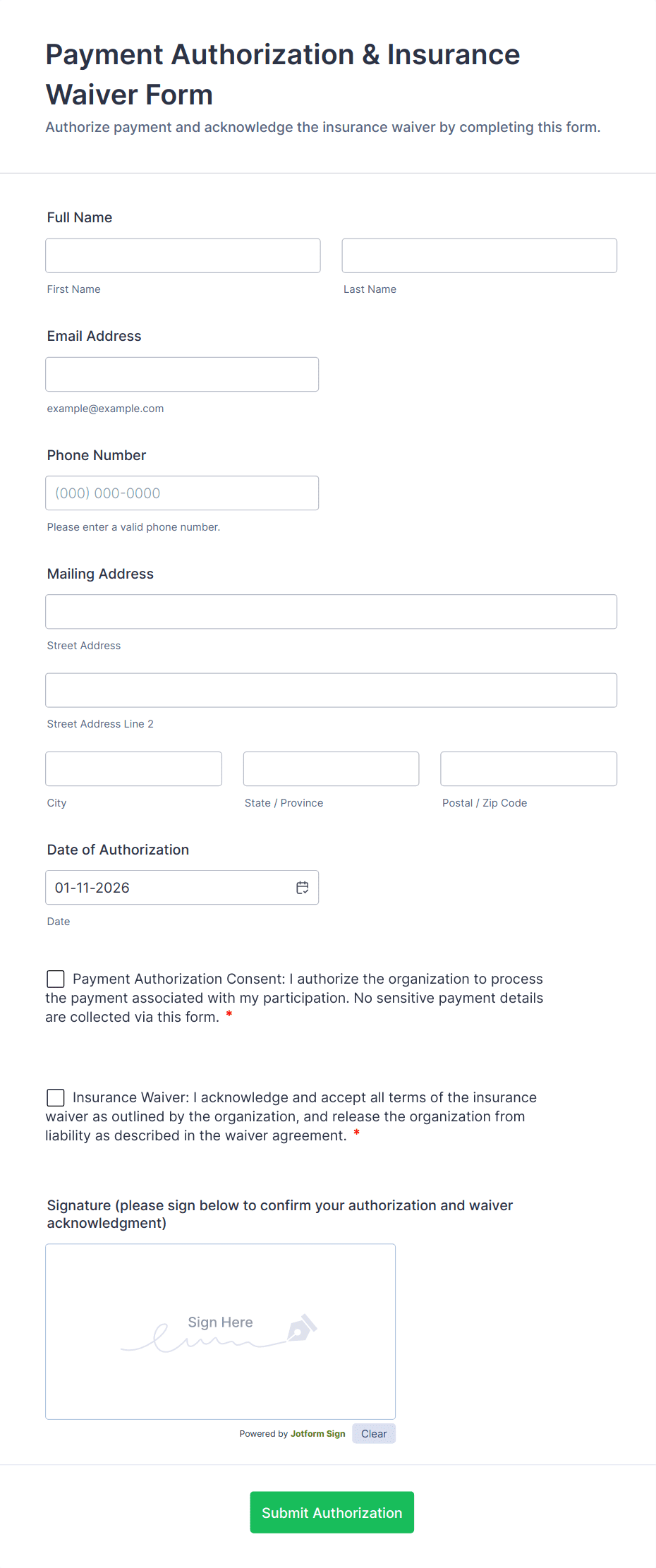 Payment Authorization Form
