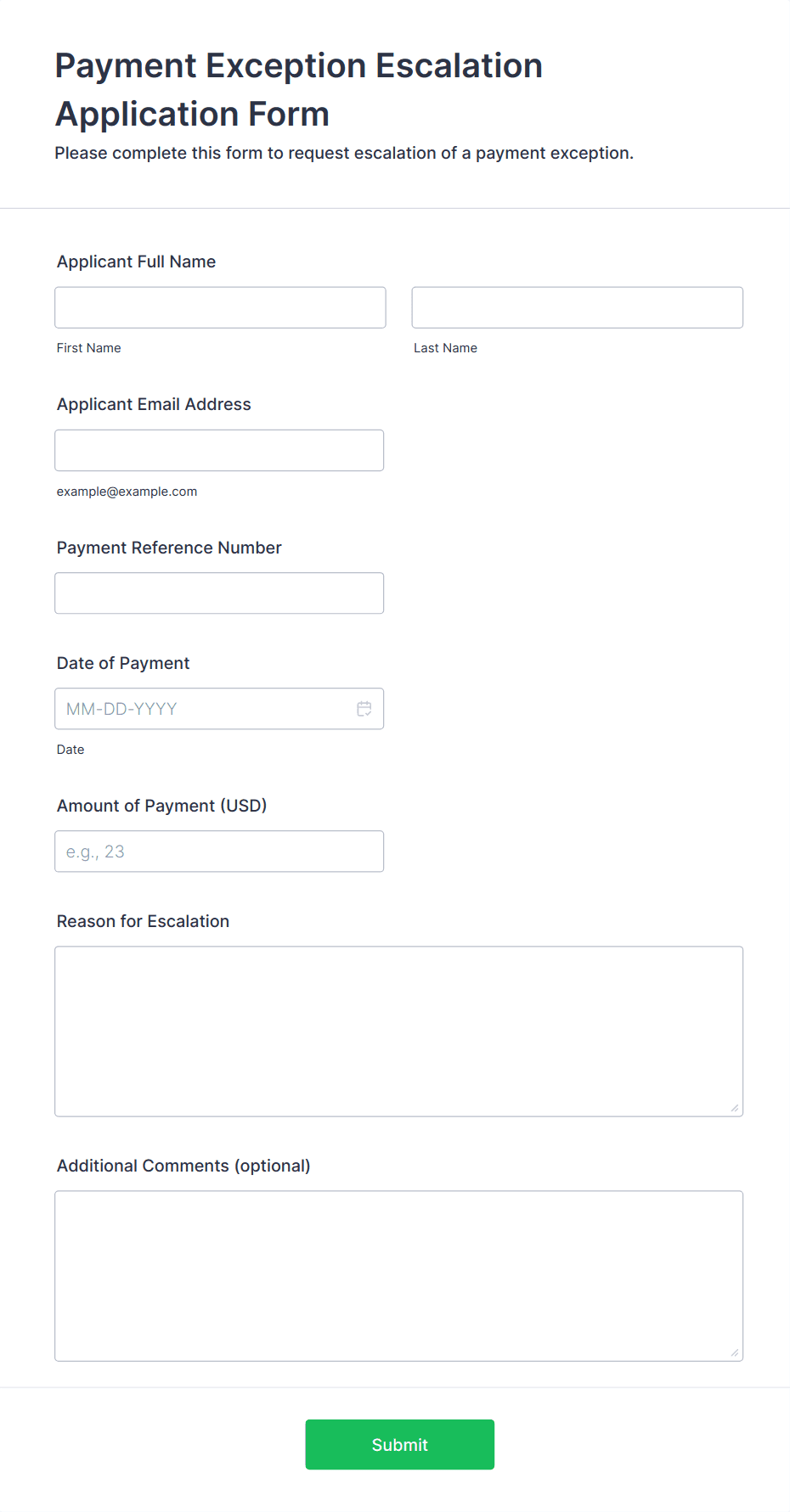 Payment forms are versatile tools that can be tailored to a wide range of scenarios. Their primary function is to facilitate secure and efficient online transactions, but the specific use cases, problem-solving points, and required fields can vary significantly depending on the context. Here’s how payment forms can be adapted for different needs:
