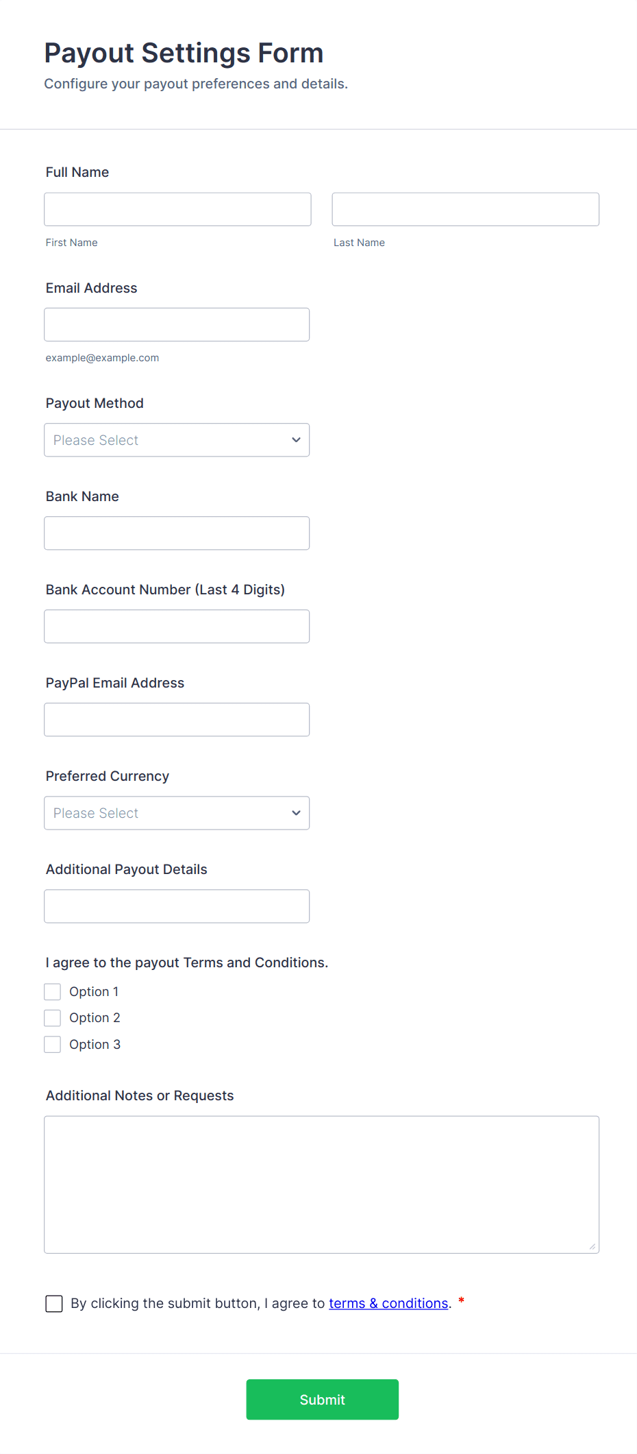 A payment form is an online form designed to securely collect payments, donations, or fees from users through integrated payment gateways.