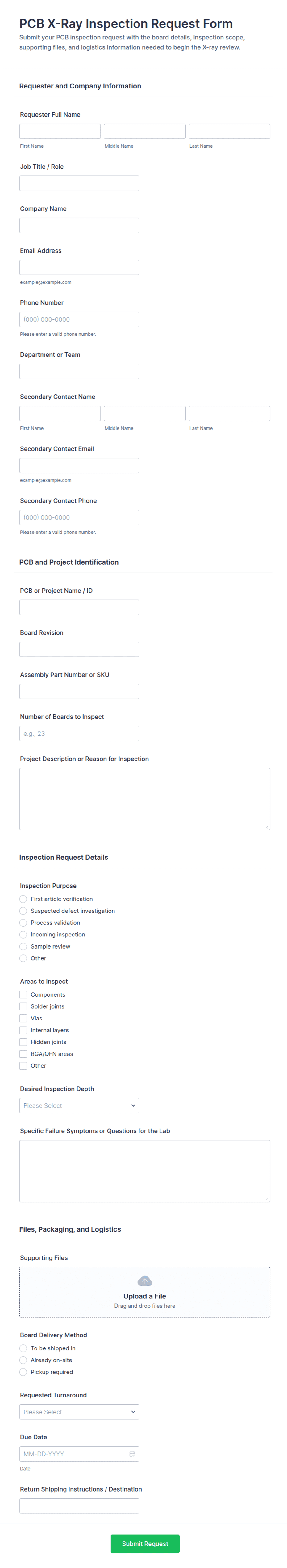 An inspection form is a structured document used to assess, record, and report the condition, compliance, or quality of assets, environments, or processes during an inspection.