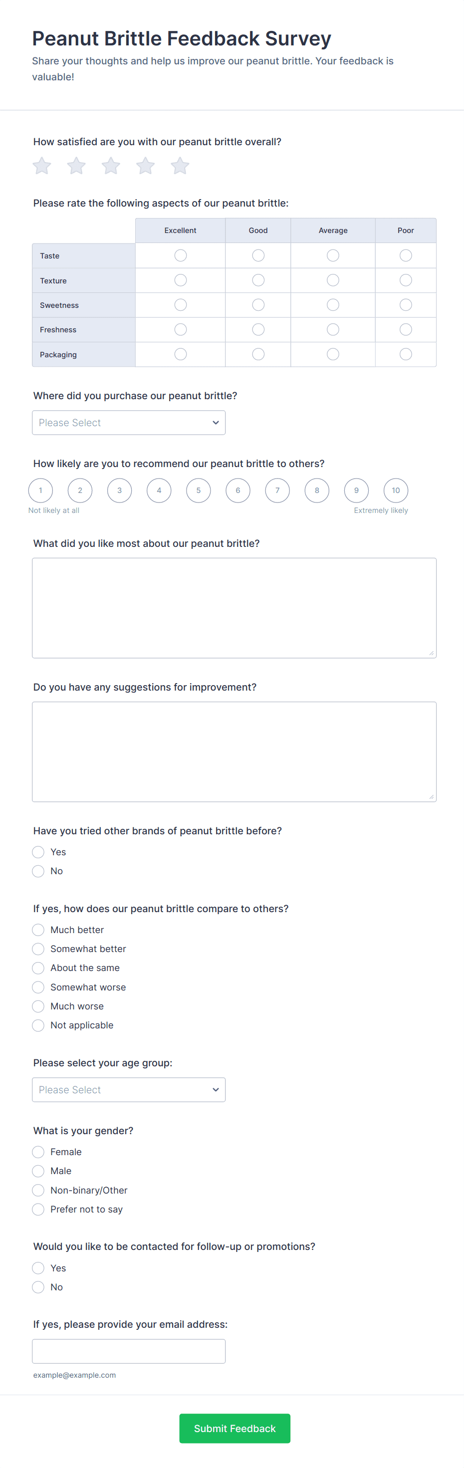 • Beta feedback forms may require fields for bug reporting and suggestions, while ongoing improvement surveys might focus on long-term user experience.