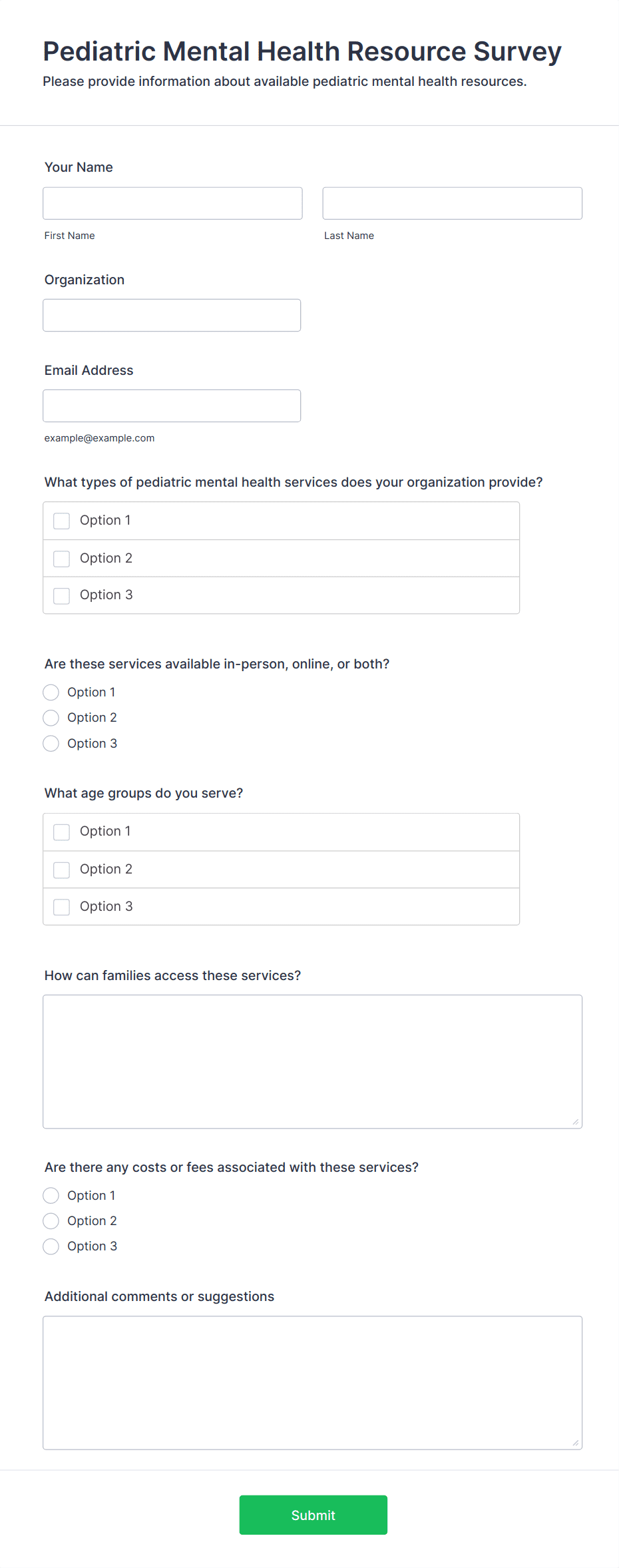 Conduct mental health assessments with this free survey template for businesses, schools, and more. Easy to customize and fill from any device. No coding.