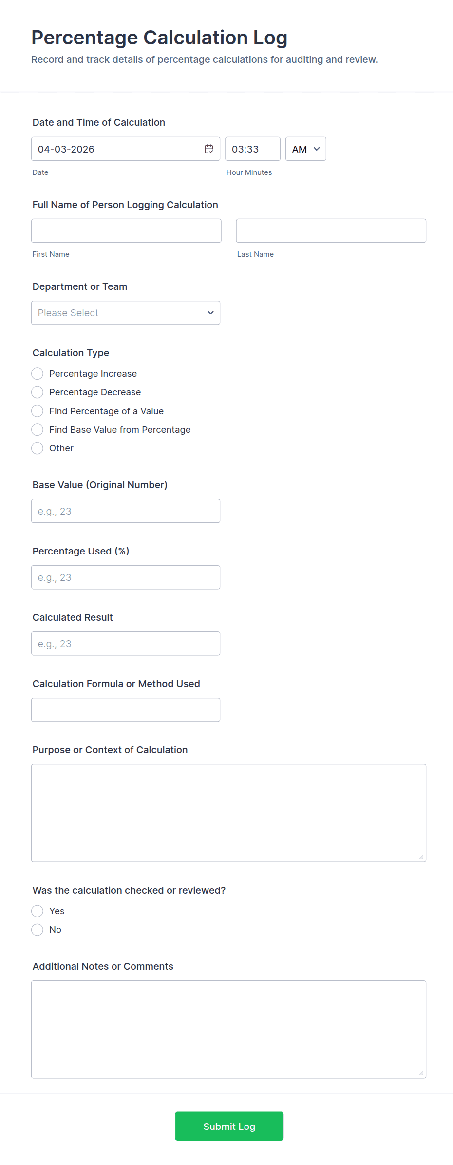 A Percentage Calculator is an easy-to-use form template designed to calculate percentages based on given values.