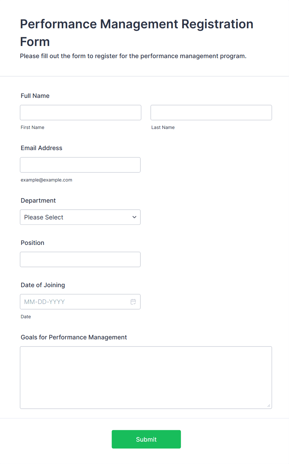 An Employee Performance Evaluation Form is a form template designed to track individual performance, monitor employee progress, and provide detailed feedback to employees.