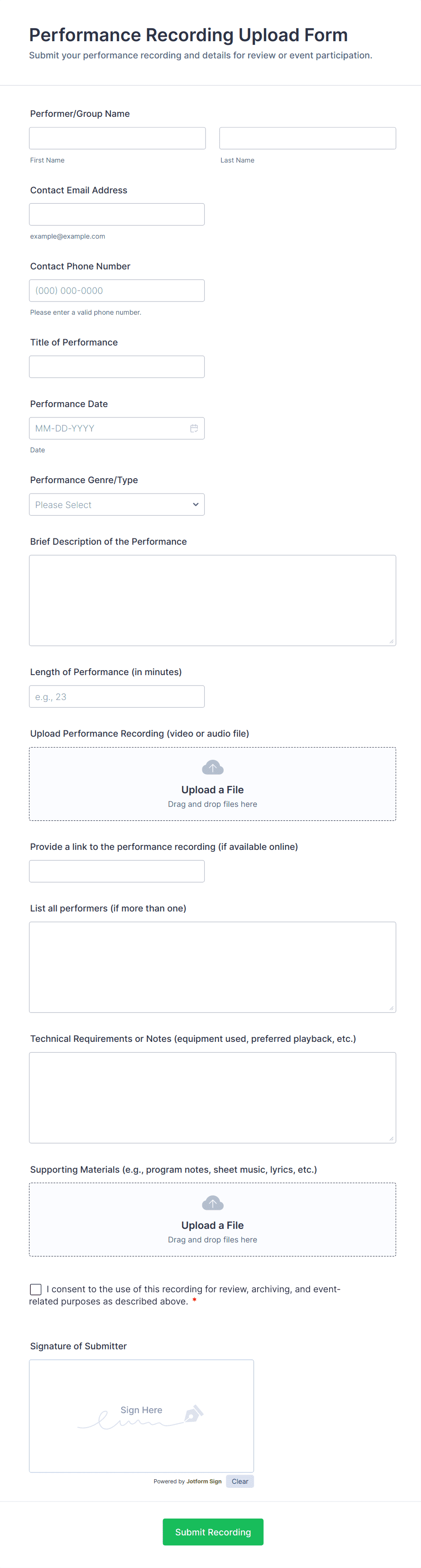A Video and Photo Submission Form is a versatile tool designed to streamline the process of collecting video and photo submissions for contests, events, or campaigns