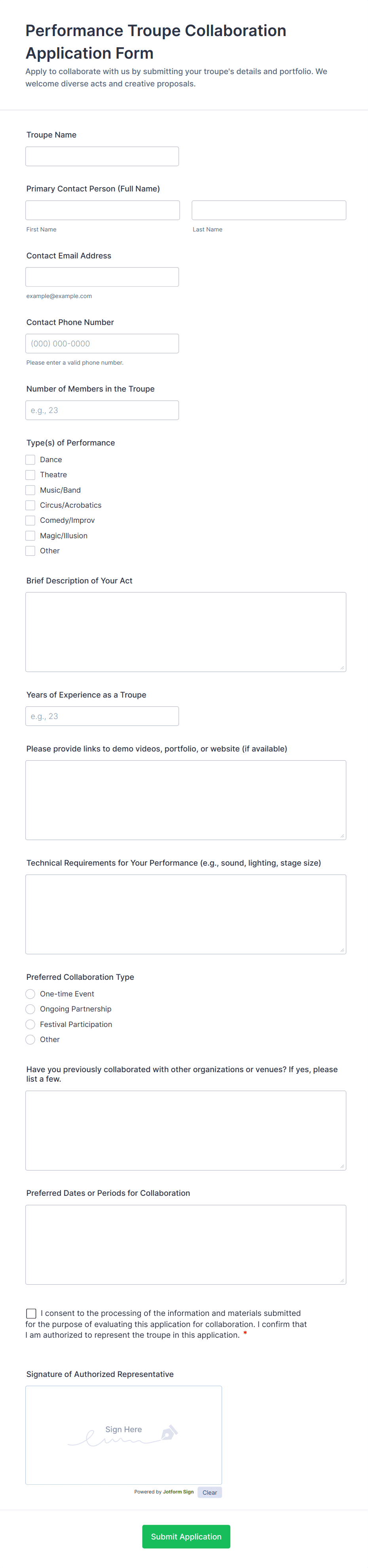 • Rental Applications: Collect financial information, rental history, and consent for background checks.