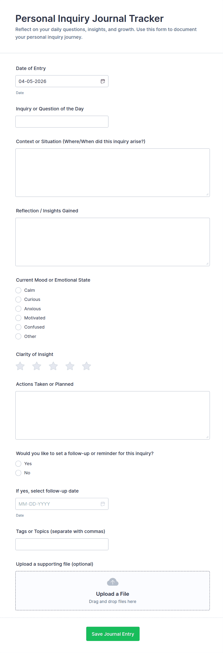 Daily Gratitude Journal Form