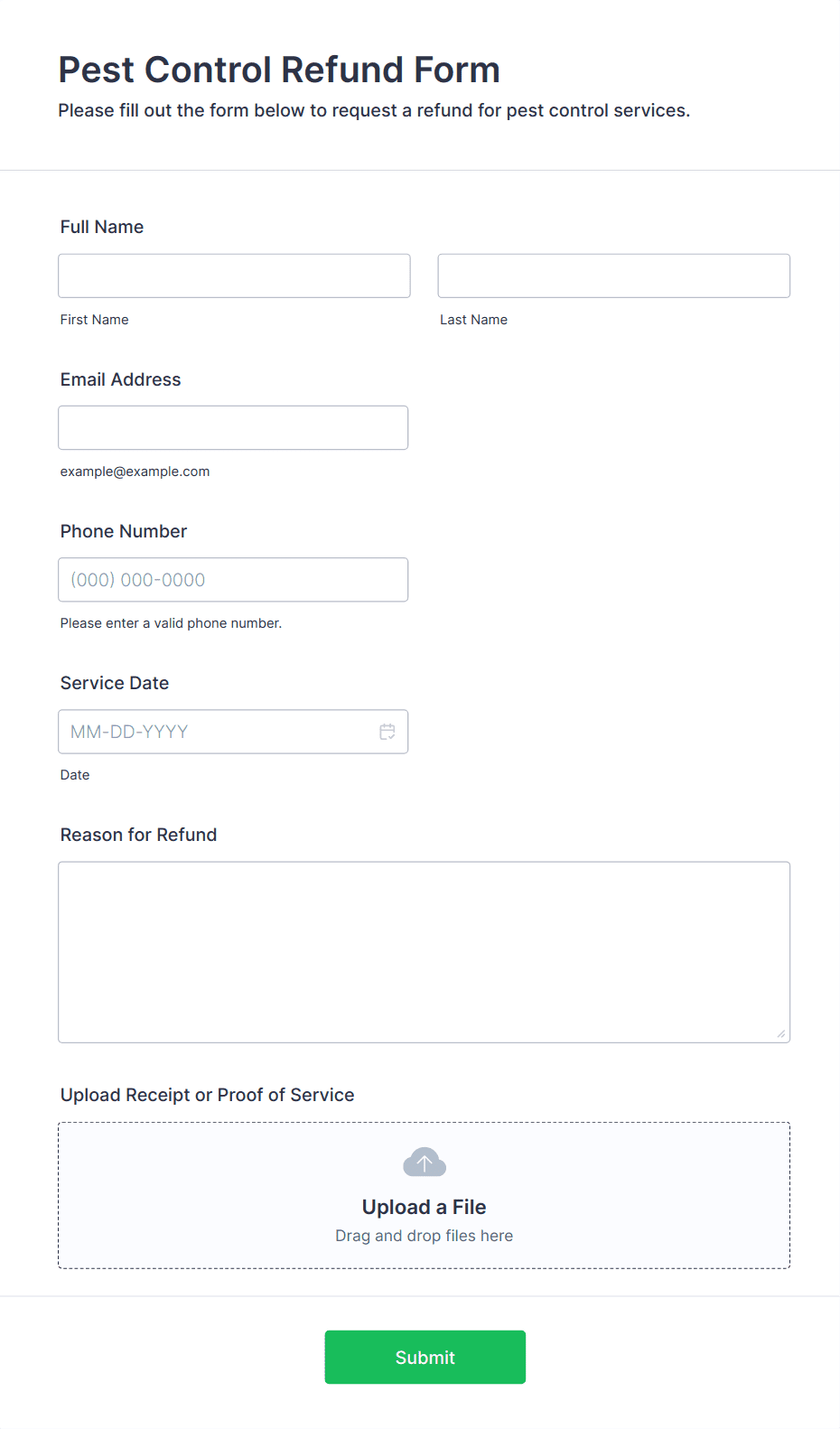 • For service orders, include fields like date/time pickers, dropdowns for service types, and text fields for special instructions.
