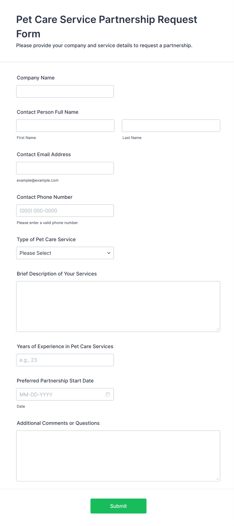 3. What information is typically collected in a pet services form?