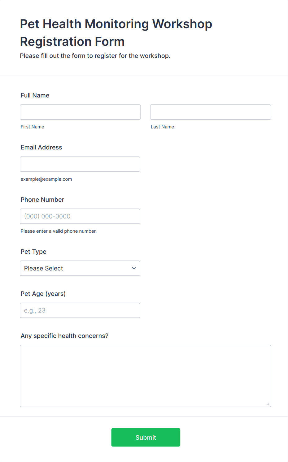 3. What information should be included in a workshop registration form?