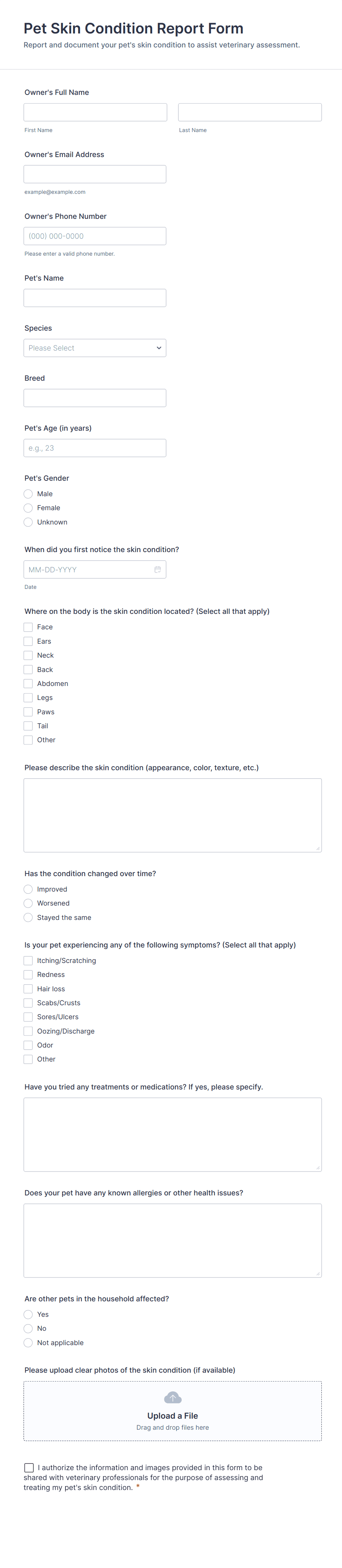 Veterinary Appointment Form Template helps clinics and animal care providers schedule pet visits and collect basic animal details online.