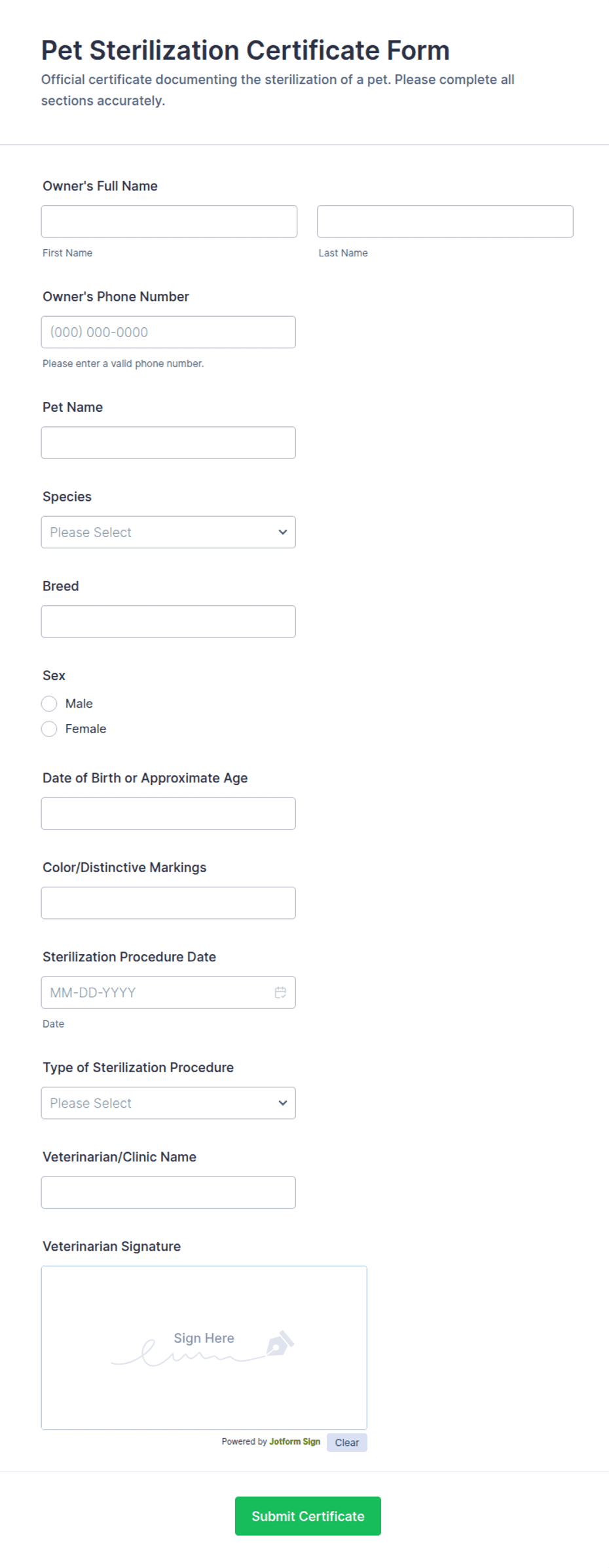 Veterinary Service Forms