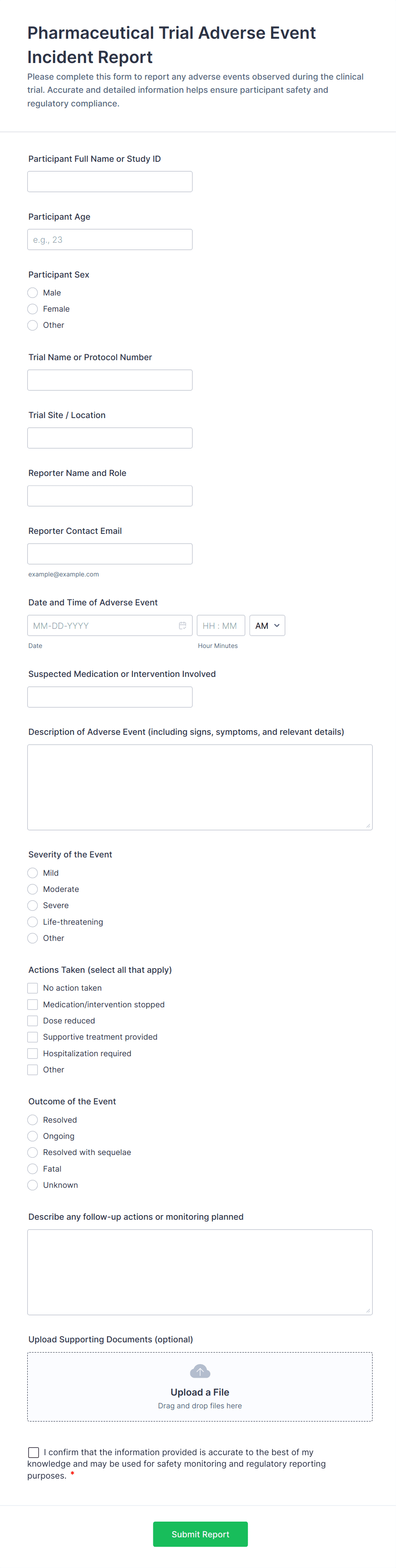 3. What information should be included in an incident report form?