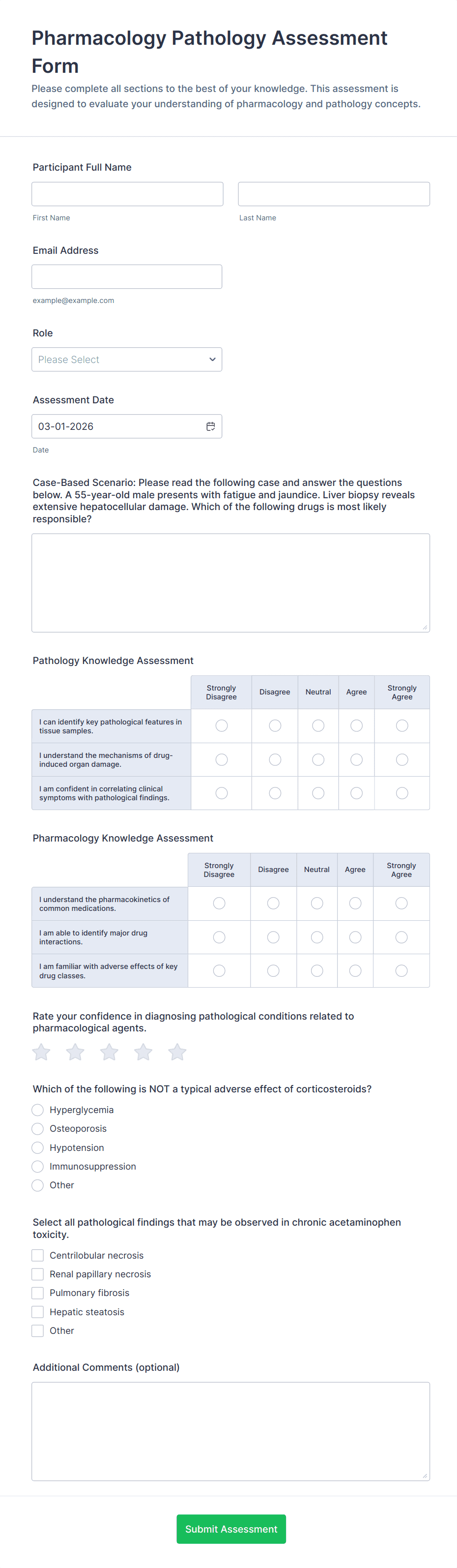 Histology Techniques Assessment Form helps educators and lab managers evaluate histology experience, proficiency, and training needs using an online, customizable Jotform assessment template.
