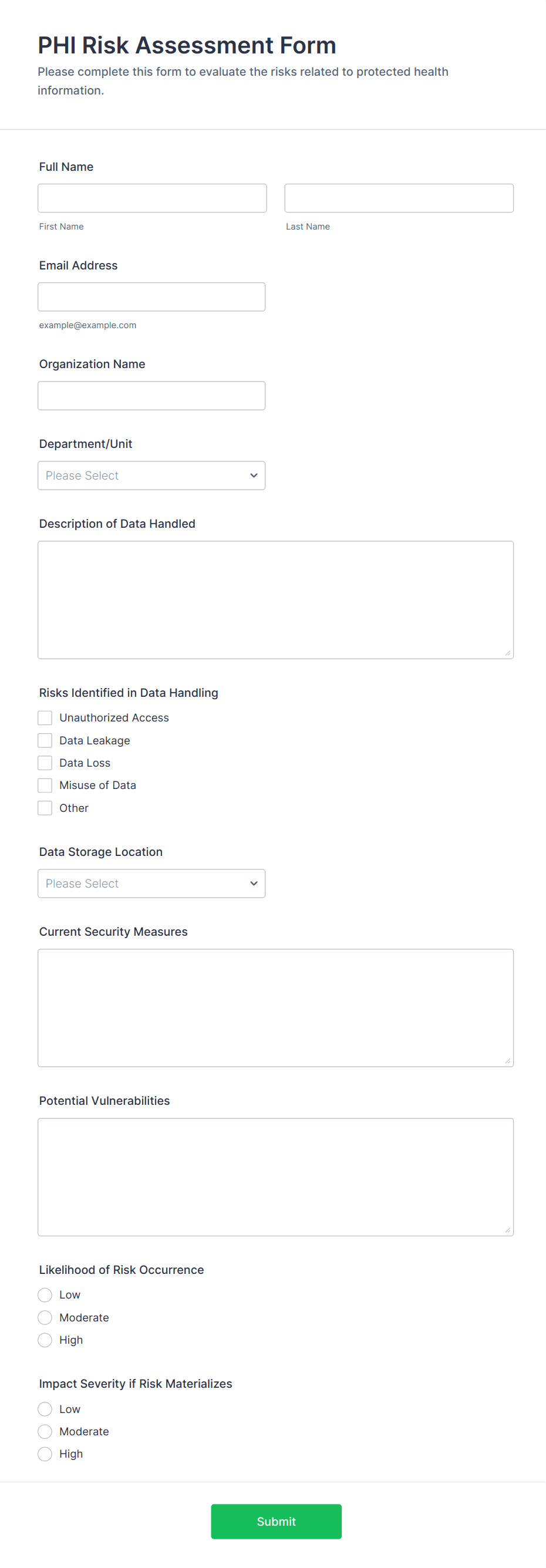 Healthcare assessment forms are structured documents used to collect and evaluate patient health information to support clinical decisions, care planning, and ongoing monitoring. They help healthcare teams capture consistent details about symptoms, medical history, risk factors, functional status, and care needs in a clear and organized way. Healthcare assessment forms are commonly used in clinics, hospitals, telehealth services, rehabilitation centers, home care, and specialty practices for intake assessments, screening evaluations, follow-up check-ins, and condition monitoring. By standardizing assessment workflows, these forms improve documentation quality, reduce missing information, and support safer, more coordinated care.
