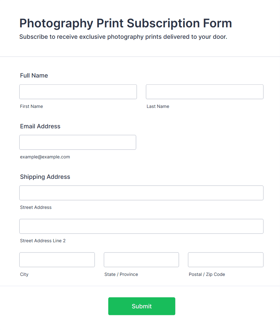 A photography form template is a pre-designed online form that helps photographers collect information for bookings, model releases, orders, feedback, and more, streamlining administrative tasks.